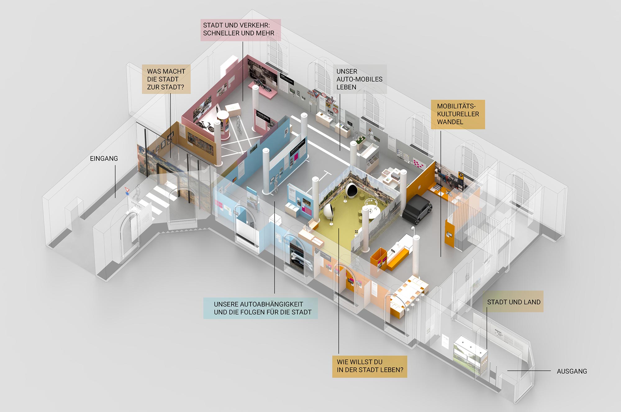 MOVE! Verkehr macht Stadt lädt ein auf eine interaktive Zeitreise durch urbane Mobilität. Vom historischen Stadtverkehr vor dem Auto bis hin zu Visionen für die Zukunft – in vier Kapiteln erkundet die Ausstellung, wie Verkehr Städte formt und gestaltet. Besucher:innen erleben interaktiv den Future Mobility Simulator, testen Gerüche und Parcours und gestalten ihre Stadt neu. Zahlreiche Mitmachstationen bringen spielend Wissen zur Verkehrswende näher und werfen die zentrale Frage auf: In welcher Stadt wollen wir leben?